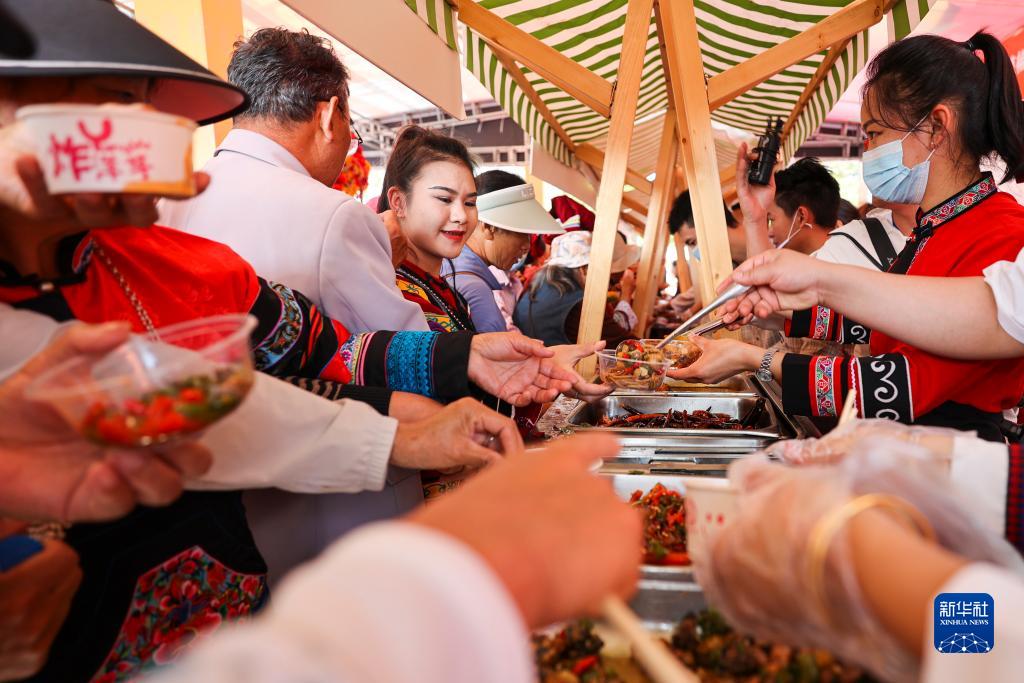 11月10日,游客在丘北辣椒節上品嘗美食。