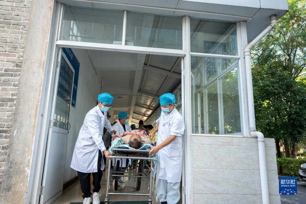 在畹町仁慈醫院,醫務人員護送一名拍完CT的病人返回病房(10月29日攝)。