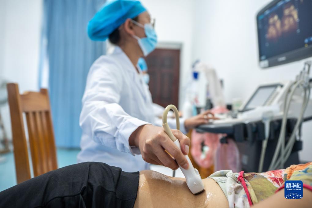 在畹町仁慈醫院,醫務人員給病人做B超檢查(10月29日攝)。