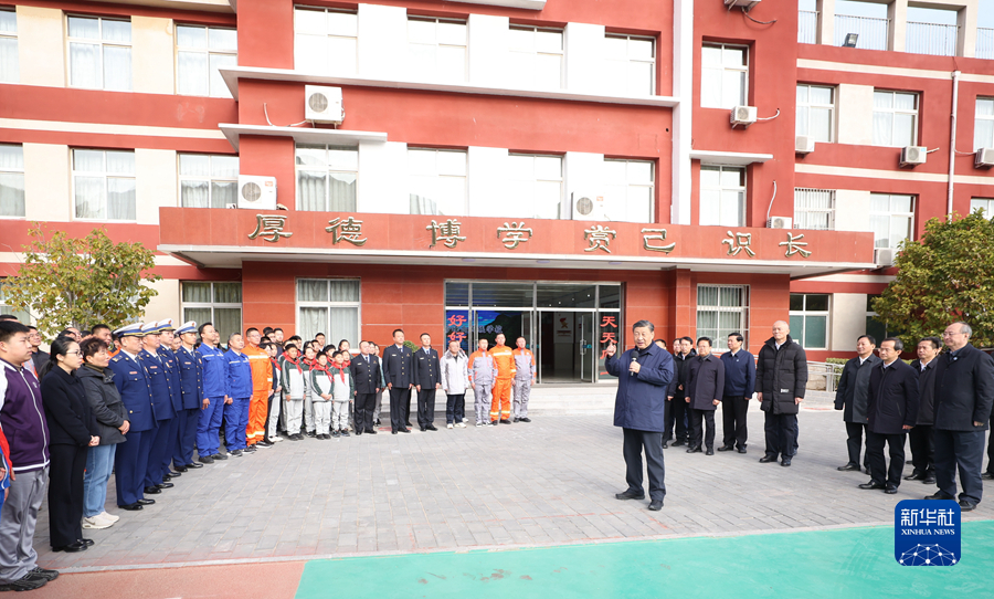 11月10日,中共中央總書記、國家主席、中央軍委主席習近平在北京、河北考察災后恢復重建工作。這是10日上午,習近平在北京門頭溝妙峰山民族學校,親切慰問因公犧牲烈士家屬和參與防汛抗洪救災的基層黨員干部群眾、消防及應急救援人員、國企職工、志愿者代表等。