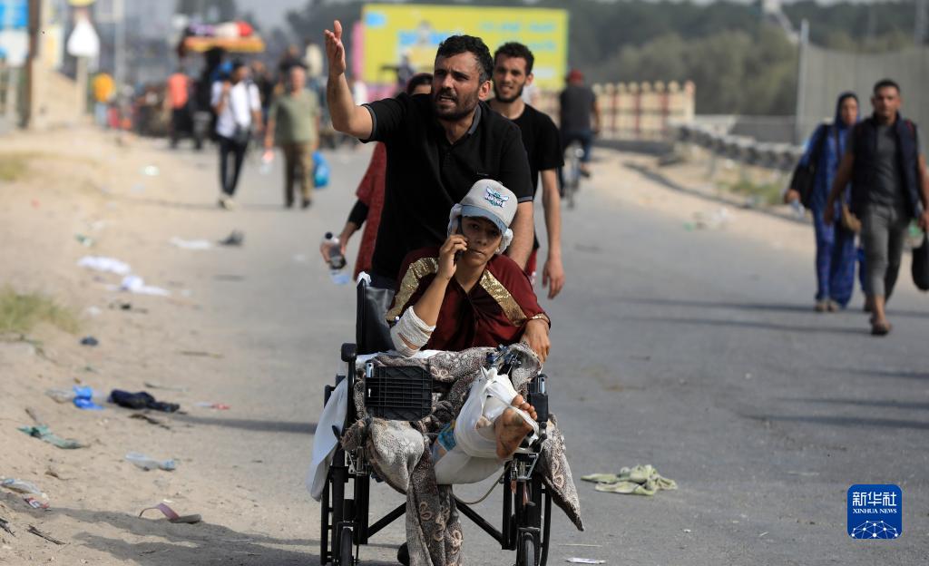 11月10日,在加沙地帶中部地區,加沙地帶北部的民眾被迫向南撤離。