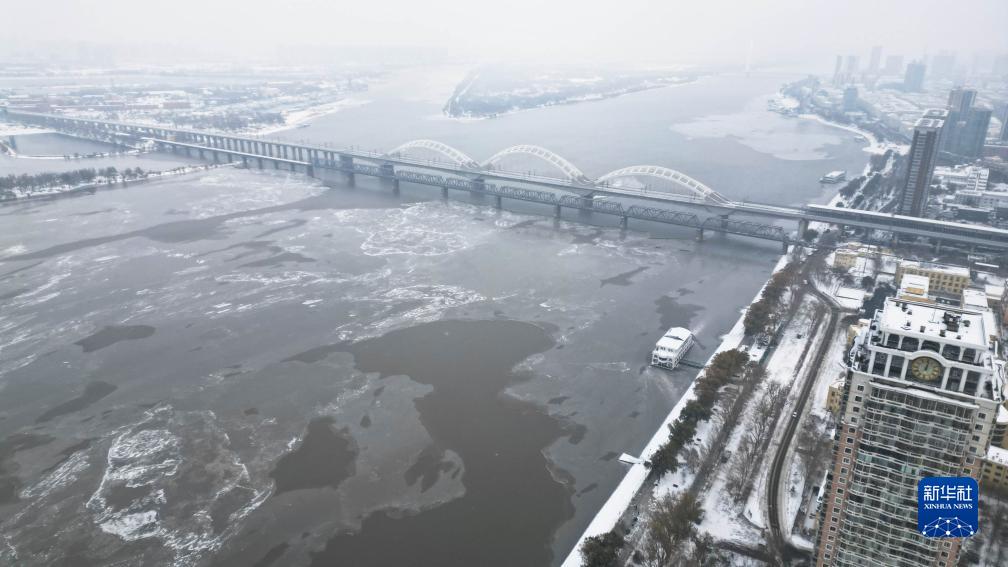 近日,隨著氣溫下降,松花江哈爾濱段江面結冰速度加快。