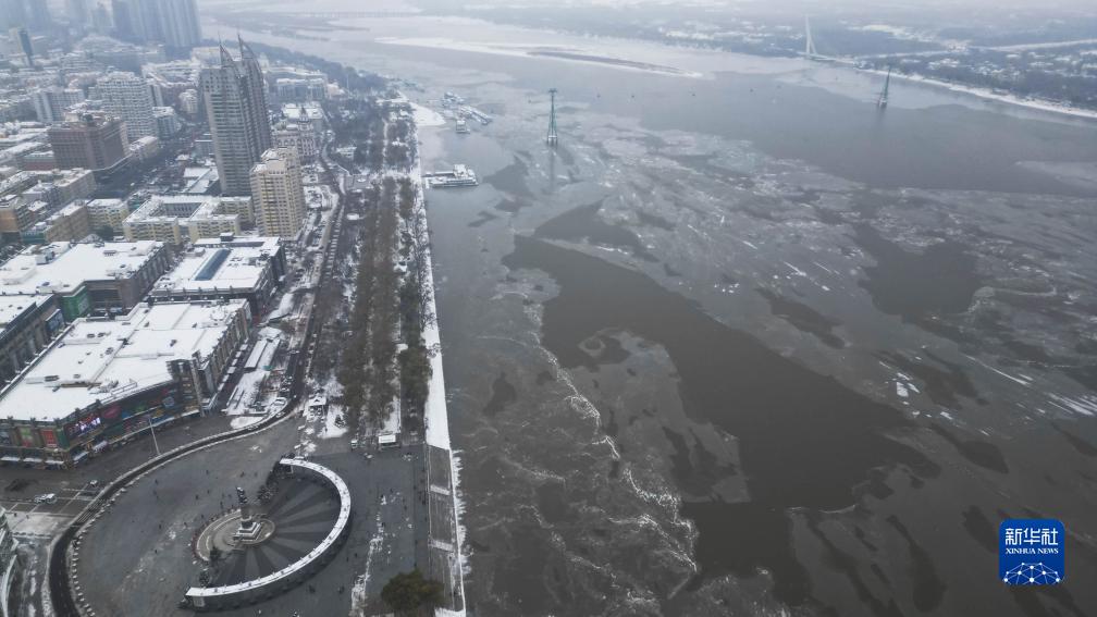 近日,隨著氣溫下降,松花江哈爾濱段江面結冰速度加快。