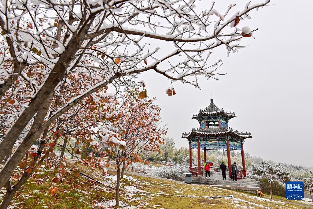 11月11日,市民在山東省青州市云門山森林公園賞雪游玩。