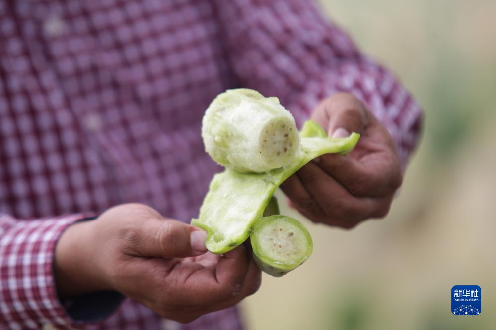 在墨西哥墨西哥州特奧蒂瓦坎,一名農民剝開仙人掌果進行展示(8月3日攝)。