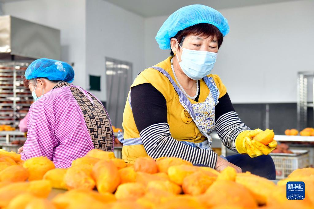 11月11日,在五蓮縣潮河鎮魏家薯干專業合作社,工作人員在加工薯干。