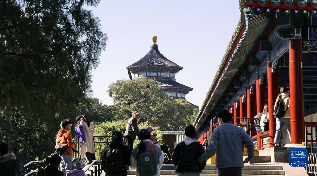 11月11日,游人在天壇公園內休閑游覽。