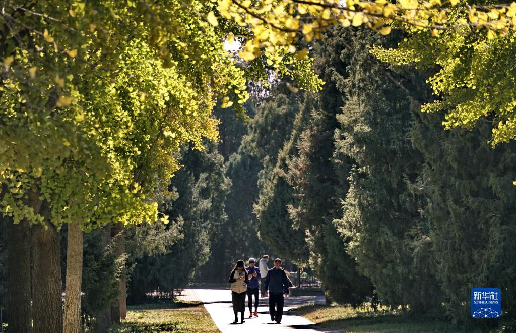 初冬時節,北京天壇公園內景色怡人,吸引大批市民前來休閑游覽。