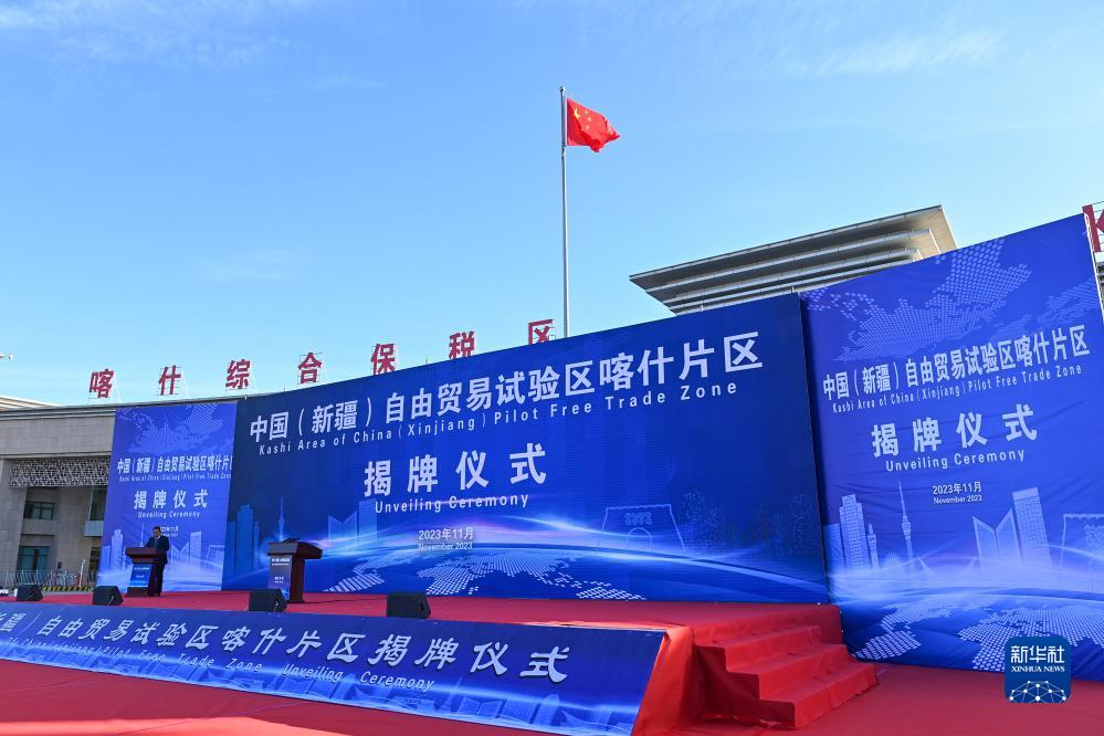11月11日拍攝的中國(新疆)自由貿易試驗區喀什片區揭牌儀式現場。