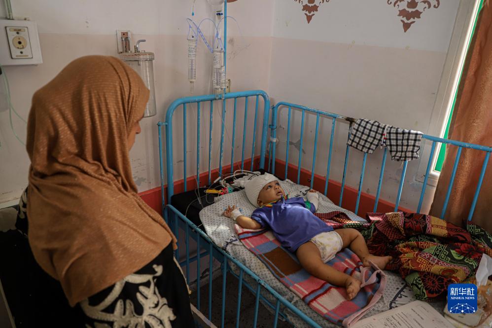 11月9日,在加沙地帶南部城市汗尤尼斯,一名兒童在醫院接受治療。