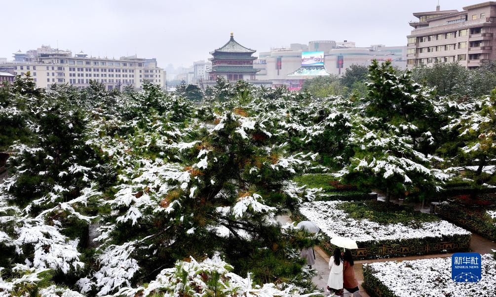當日,陜西省西安市迎來立冬以來首場降雪,白雪掩映下的古都古樸寧靜。