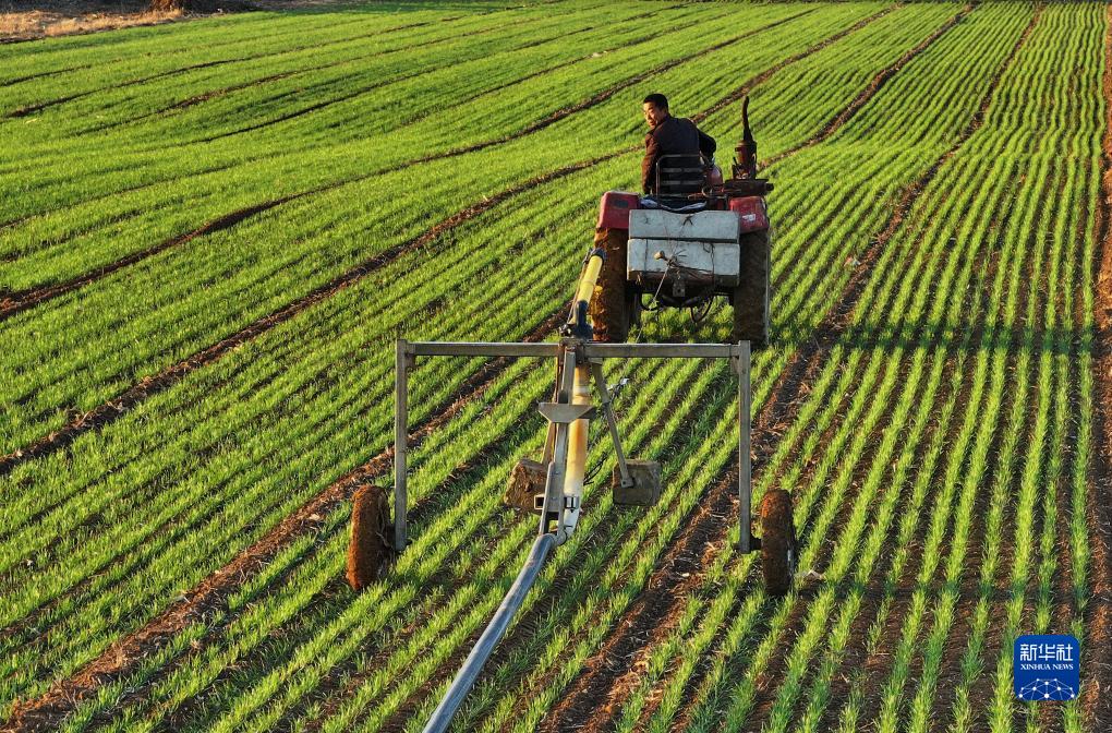 眼下正值冬小麥澆灌封凍水時節,河北省灤州市的農民搶抓農時,采用噴灌、微噴等節水設備給冬小麥澆水,為來年糧食豐收打好基礎。
