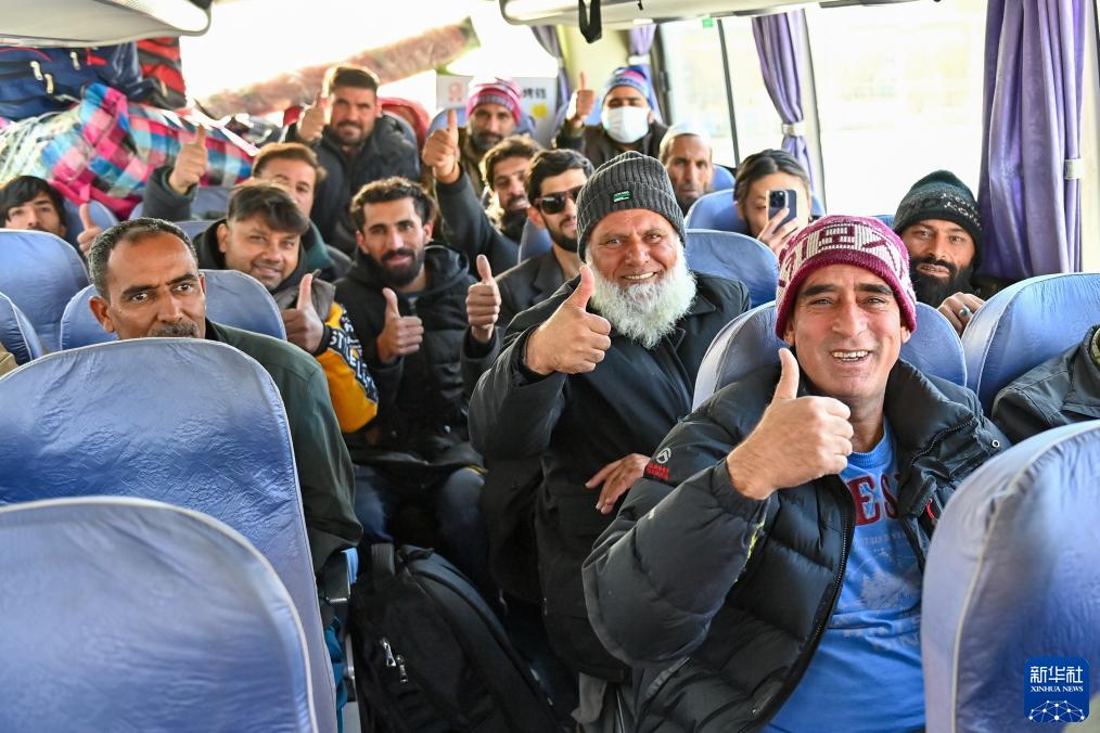 在新疆紅其拉甫口岸,出境旅客在國際道路旅客班車上等待發車(11月6日攝)。