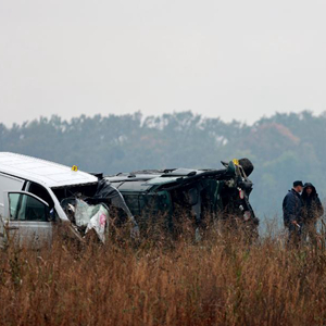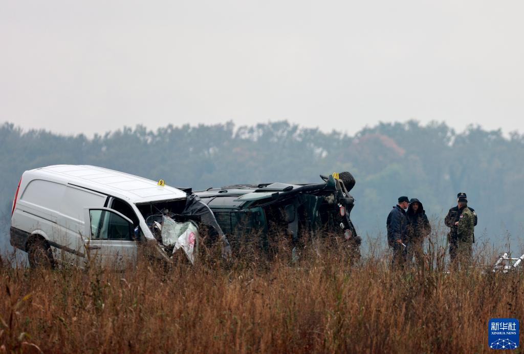 11月11日,在克羅地亞東部城市溫科夫齊,工作人員聚集在巴諾日奇造成的交通事故現場。