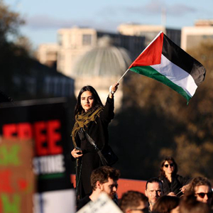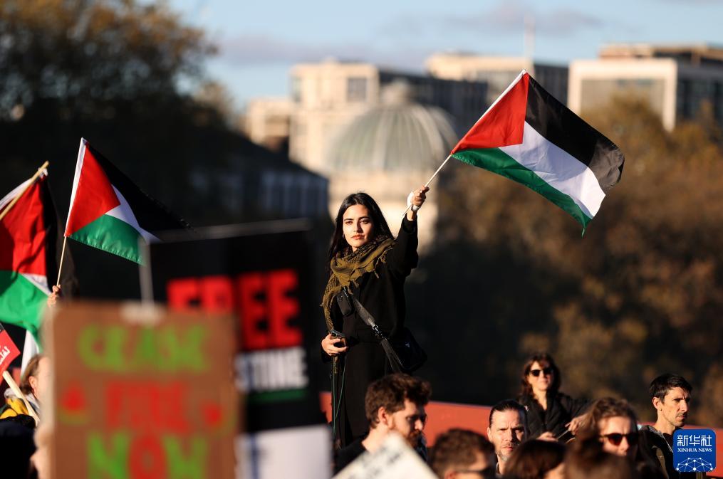 當日,數十萬民眾在英國倫敦參加聲援巴勒斯坦的游行集會,呼吁盡快實現加沙?;?。