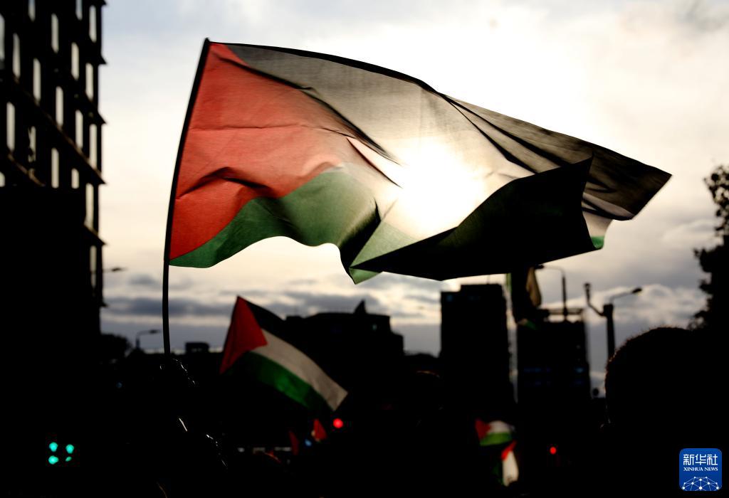 當日,數十萬民眾在英國倫敦參加聲援巴勒斯坦的游行集會,呼吁盡快實現加沙?;?。