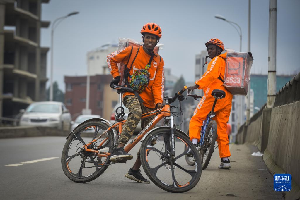 2022年7月19日,由中國企業參與投資的外賣公司beU delivery的外賣員在埃塞俄比亞首都亞的斯亞貝巴送餐。