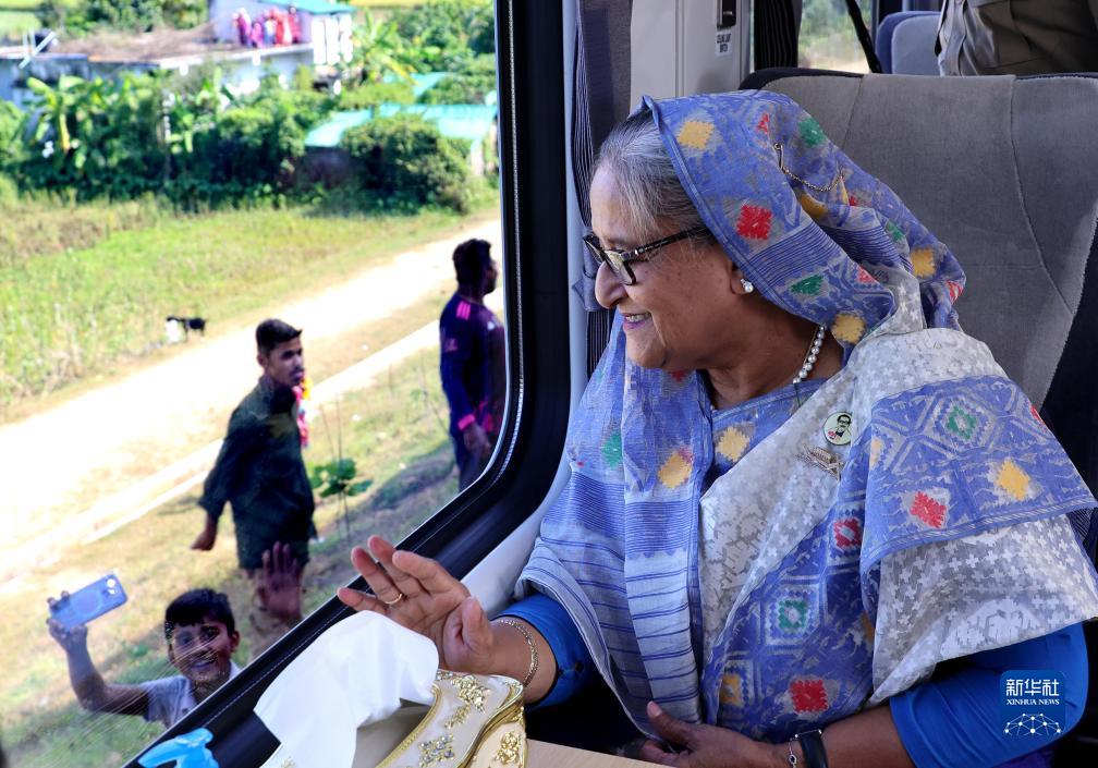 11月11日,在孟加拉國科克斯巴扎爾,孟加拉國總理哈西娜乘坐多哈扎里至科克斯巴扎爾鐵路列車。