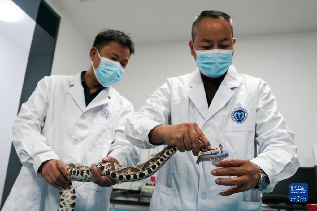 11月8日,在安徽省祁門蛇傷研究所,工作人員取五步蛇毒用于研究。