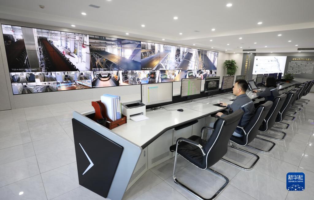 11月12日,工人在唐山海港經濟開發區管帶機廊道項目中央控制室工作。