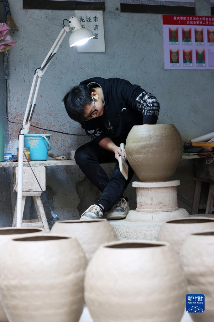 近年來,重慶市黔江區把非遺項目濯水石雞坨土陶制作技藝與文化、旅游產業相結合,建起非遺傳承基地和非遺工坊,由非遺傳承人對脫貧戶、大學生等進行技能培訓,并將掌握制作技藝的人員招聘到土陶制作相關企業就業,推動非遺技藝的傳承,助推鄉村振興。