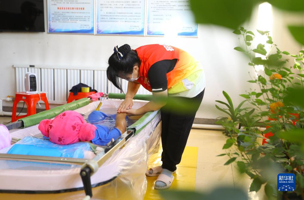 11月12日,志愿者為生活無法自理的老人洗浴。