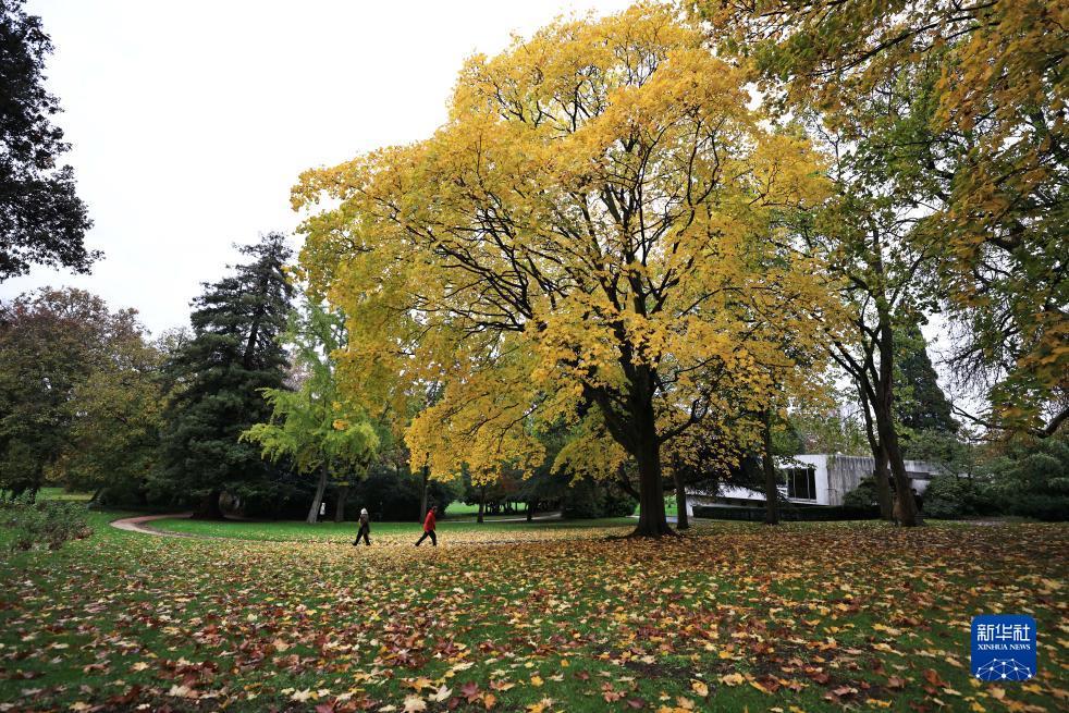 11月12日,人們走在法國巴黎蒙蘇里公園內。