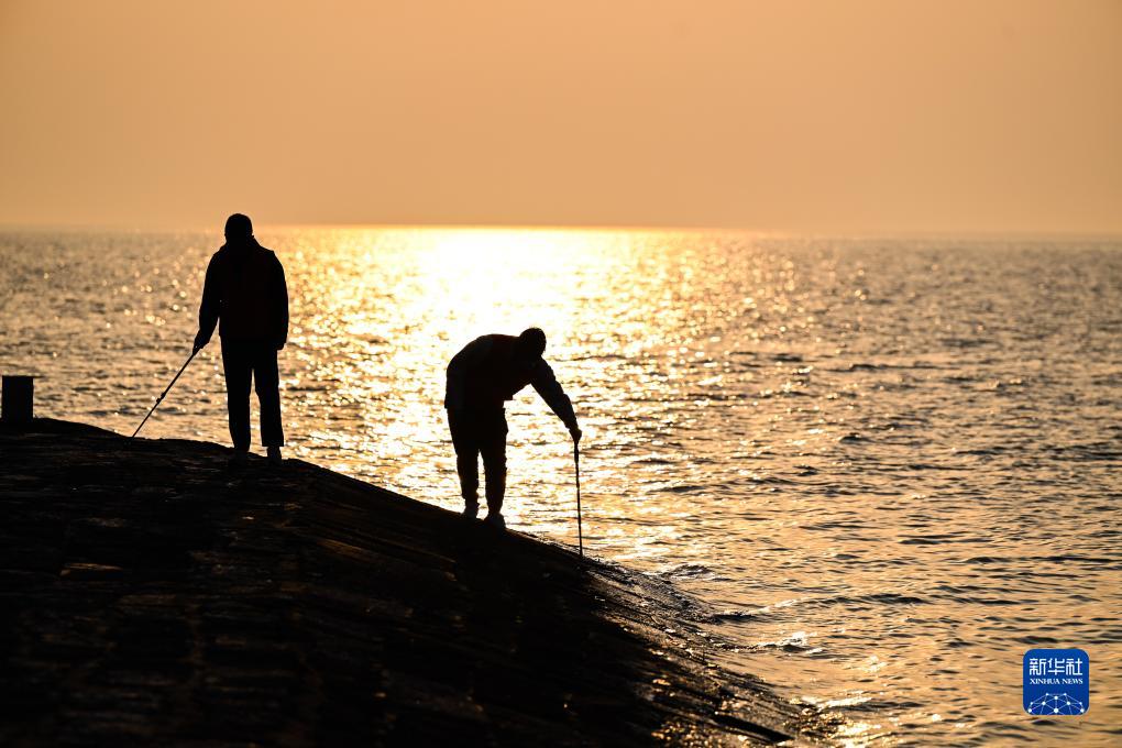 江蘇省洪澤湖堤防管理所工作人員在洪澤湖大堤上巡查堤壩(11月8日攝)。