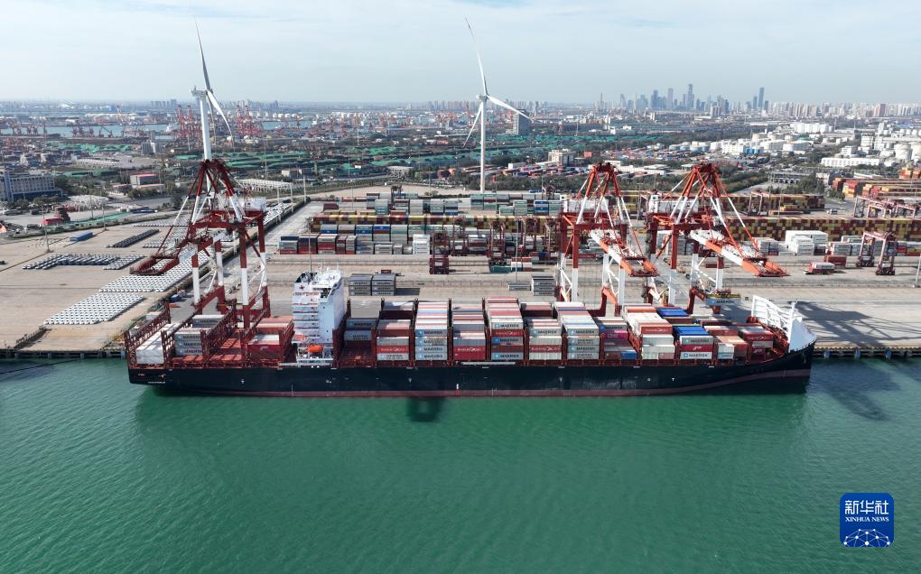 集裝箱貨輪??吭谔旖蚋蹥W亞國際集裝箱碼頭(11月13日攝,無人機照片)。