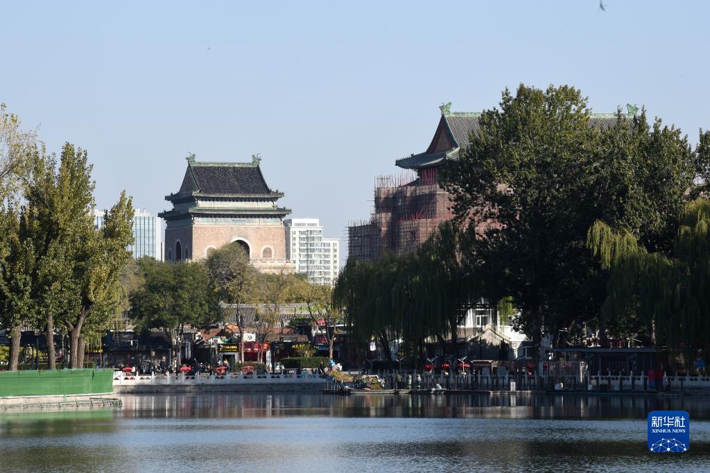 遠眺北京鐘鼓樓(11月7日攝)。鐘鼓樓位于北京中軸線的最北端,兩樓前后縱置,氣勢雄偉。作為元、明、清三代都城的報時中心,至今已有700多年的歷史。