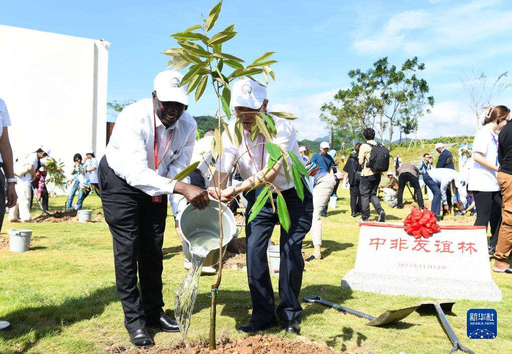 11月14日,參加中非農業合作論壇的嘉賓在海南省三亞市吉陽區大茅村共植中非友誼林。