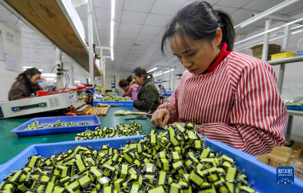 11月14日,工人在施秉縣一家電子企業生產車間工作。