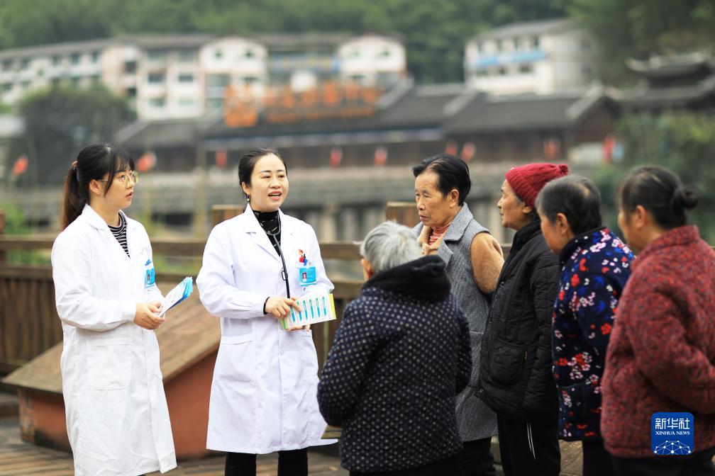 11月14日,貴州省赤水市丙安鎮衛生院的醫護人員在街頭為群眾講解糖尿病防治知識。
