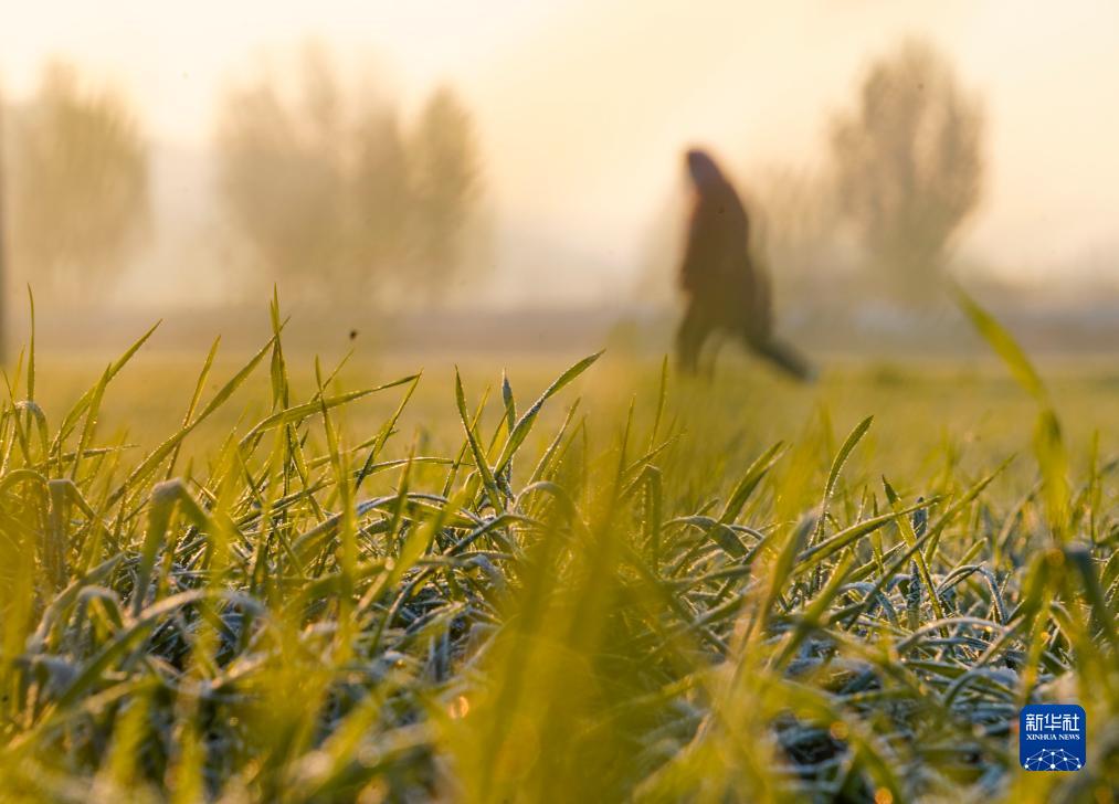 11月14日,河北省遵化市東新莊鎮農民在麥田澆水。
