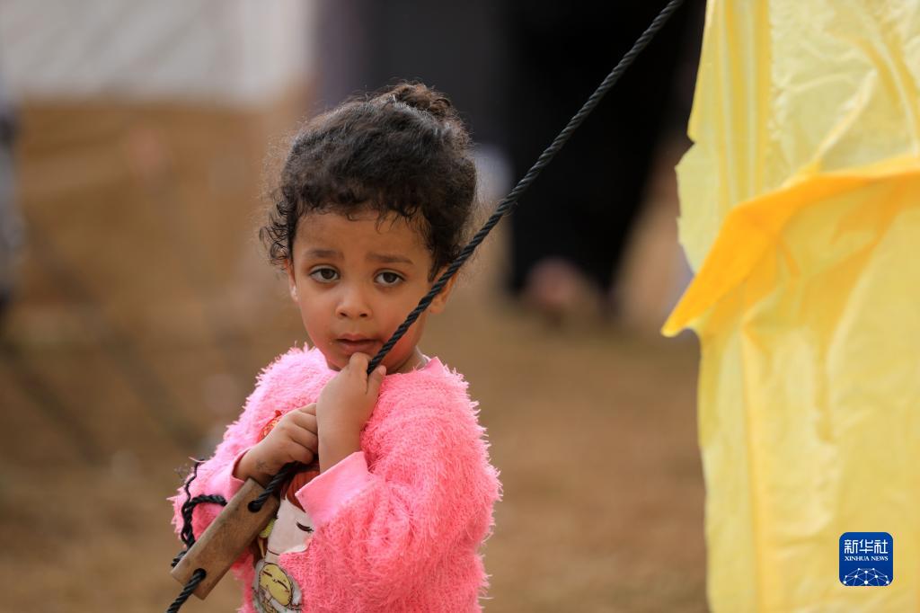 這是11月14日在加沙地帶南部城市汗尤尼斯一個臨時營地拍攝的巴勒斯坦兒童。