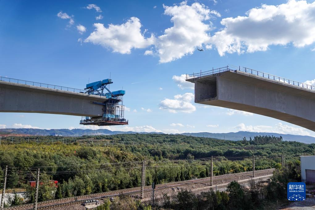 兩座特大橋均位于云南省昆明市嵩明縣境內,八家村跨滬昆鐵路特大橋全長5141米,阿里塘特大橋全長1421米。據介紹,渝昆高鐵云貴段共有橋梁91座,特大橋梁43座,目前完成設計總量過半任務,總體推進順利。渝昆高鐵開通后,乘坐列車從重慶至昆明的旅行時間,將由現在的5小時縮短至2小時左右。
