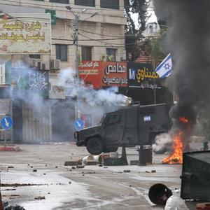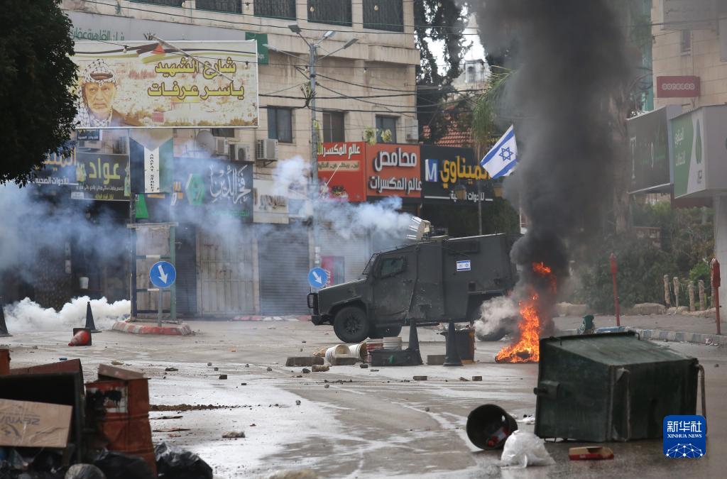 11月14日,在約旦河西岸城市圖勒凱爾姆,以軍與巴勒斯坦人發生沖突。