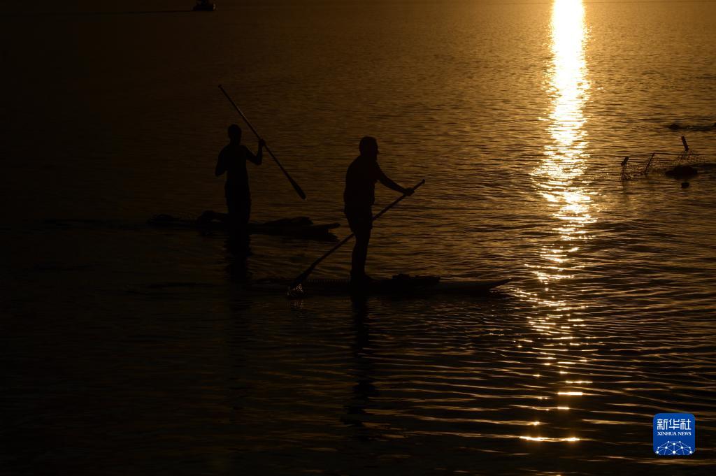 11月14日,兩名男子在巴西首都巴西利亞帕拉諾阿湖中消暑。