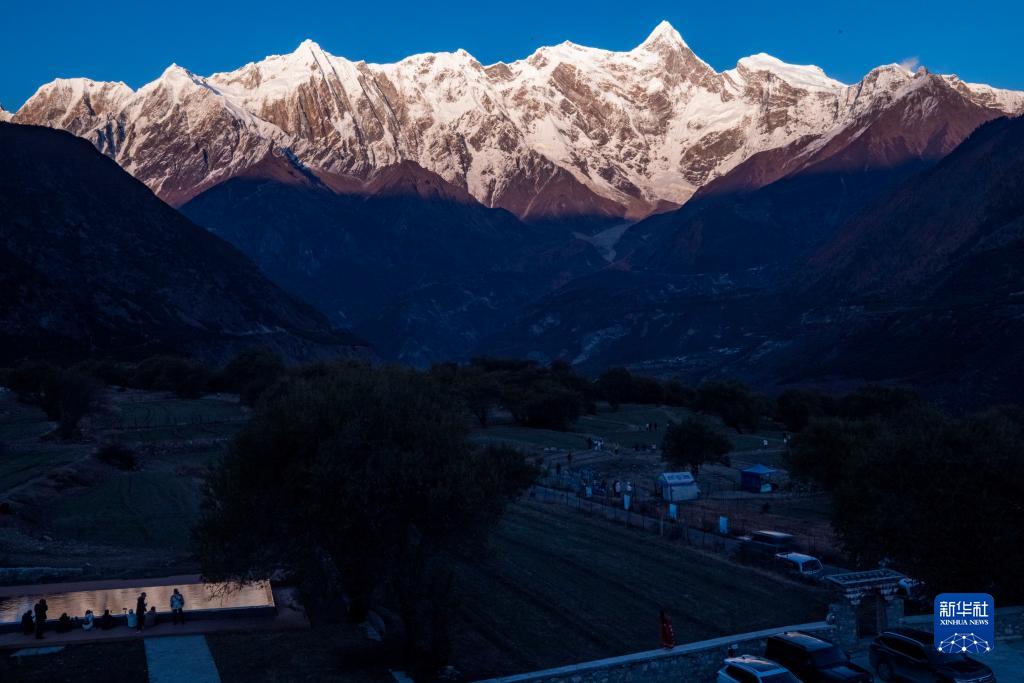游客們在索松村拍攝日落時分的南迦巴瓦峰(11月13日攝)。