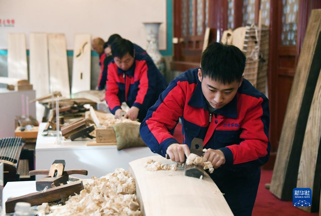 11月15日,樂器制作師在活動中展示“蘭考古箏”制作。