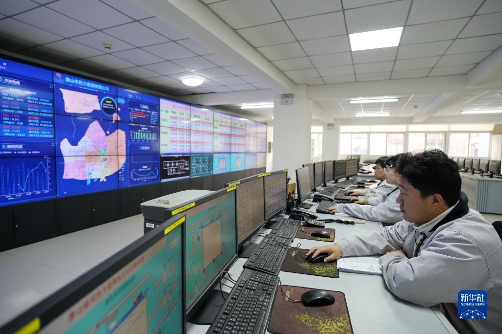 11月15日,唐山市熱力集團有限公司調度指揮中心的工作人員在監測供熱系統運行情況。