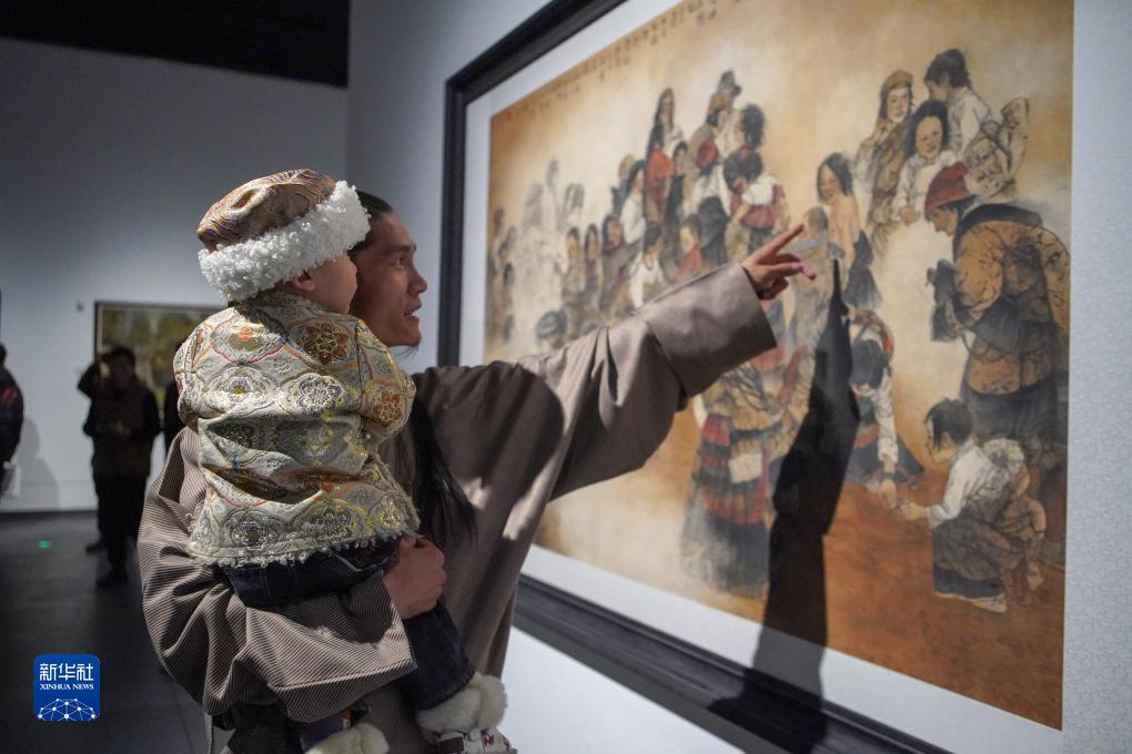 11月15日,觀眾在西藏美術館參觀畫作《草原紀事》。