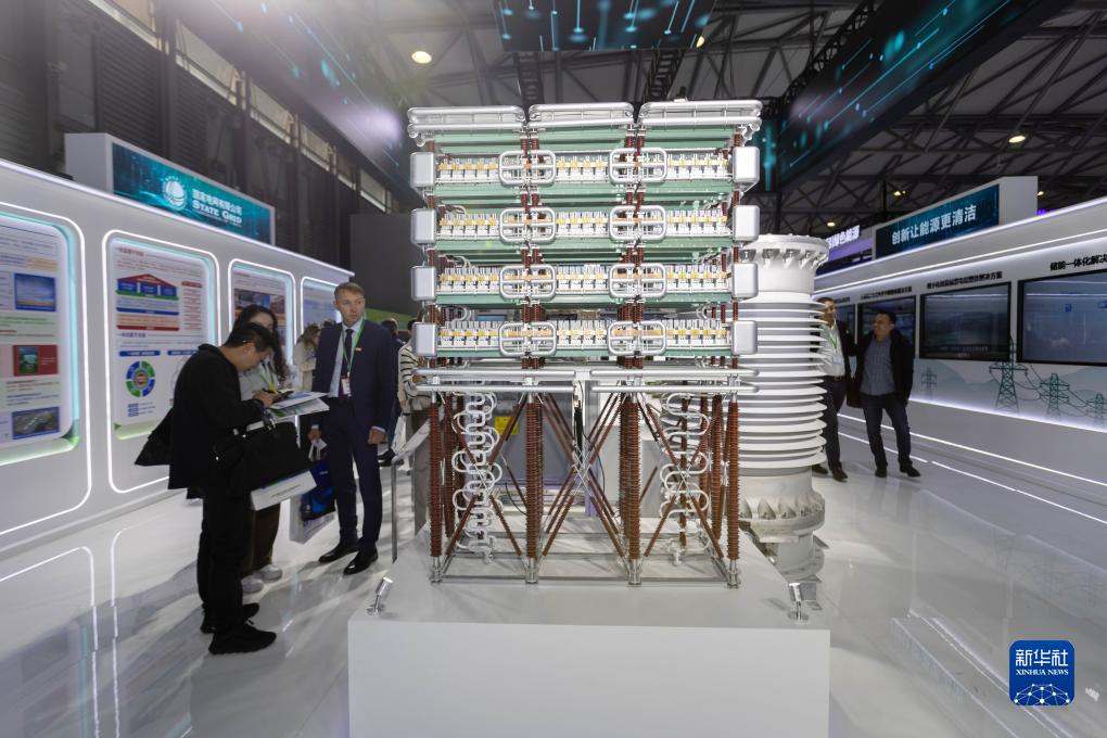 11月15日在上海國際電力設備及技術展覽會的國家電網展位拍攝的柔性直流換流閥。