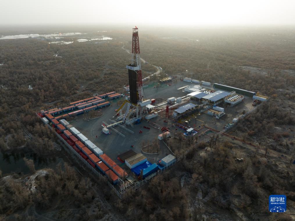 11月15日拍攝的中國石化“深地一號”躍進3-3XC井(無人機照片)。