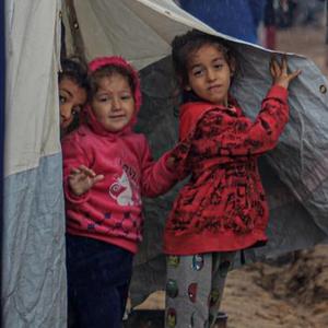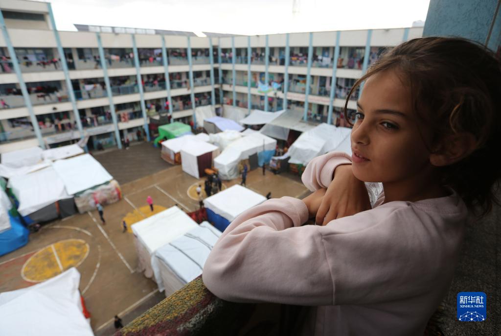 這是11月15日在加沙地帶南部城市拉法拍攝的一名暫住在一所學校內的巴勒斯坦兒童。
