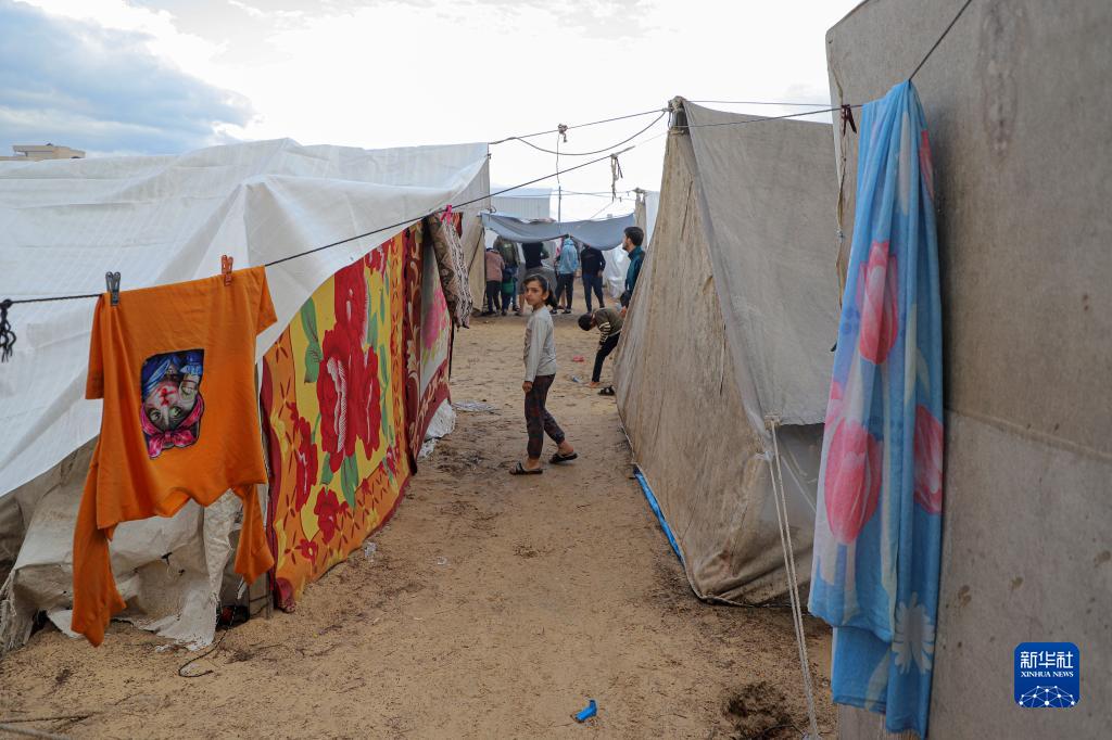 這是11月15日在加沙地帶南部城市汗尤尼斯一處臨時營地拍攝的巴勒斯坦兒童。
