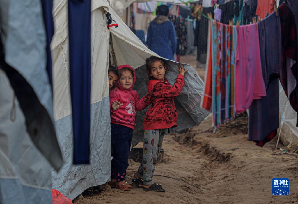 這是11月15日在加沙地帶南部城市汗尤尼斯一處臨時營地拍攝的巴勒斯坦兒童。