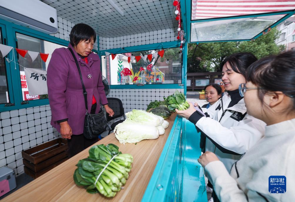 11月16日,嘉興市南湖區東柵街道新南社區的愛心蔬菜點工作人員在銷售蔬菜,所得收入用來充實社區愛心慈善基金。
