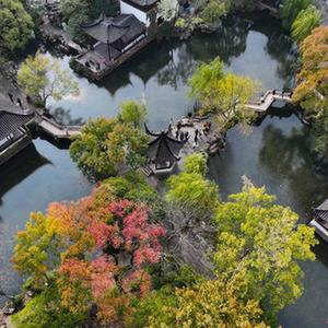 初冬時節,江蘇蘇州拙政園內色彩斑斕,景色如畫,吸引眾多游客前來參觀游覽。