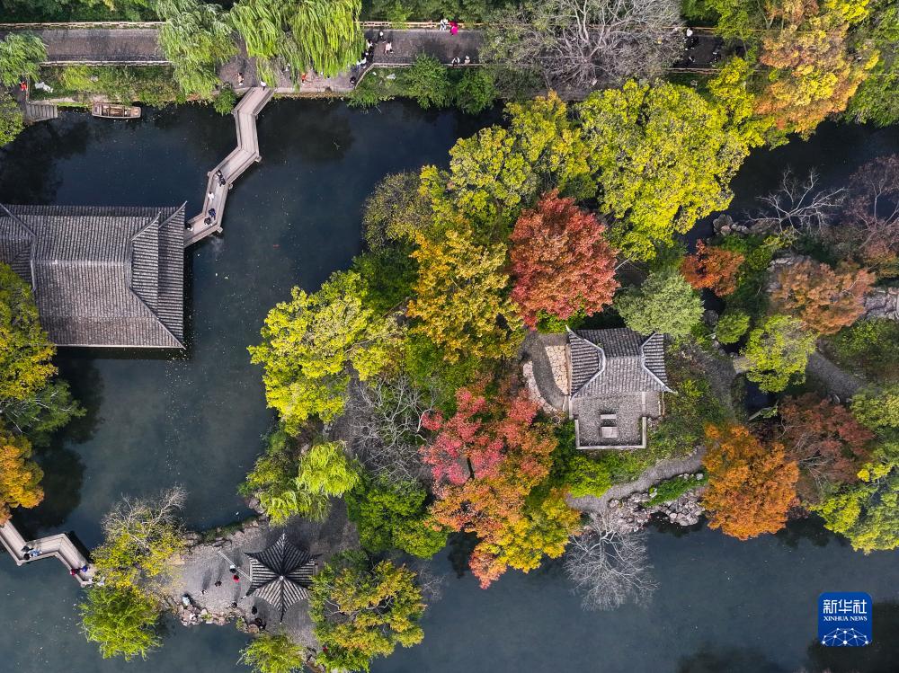 初冬時節,江蘇蘇州拙政園內色彩斑斕,景色如畫,吸引眾多游客前來參觀游覽。